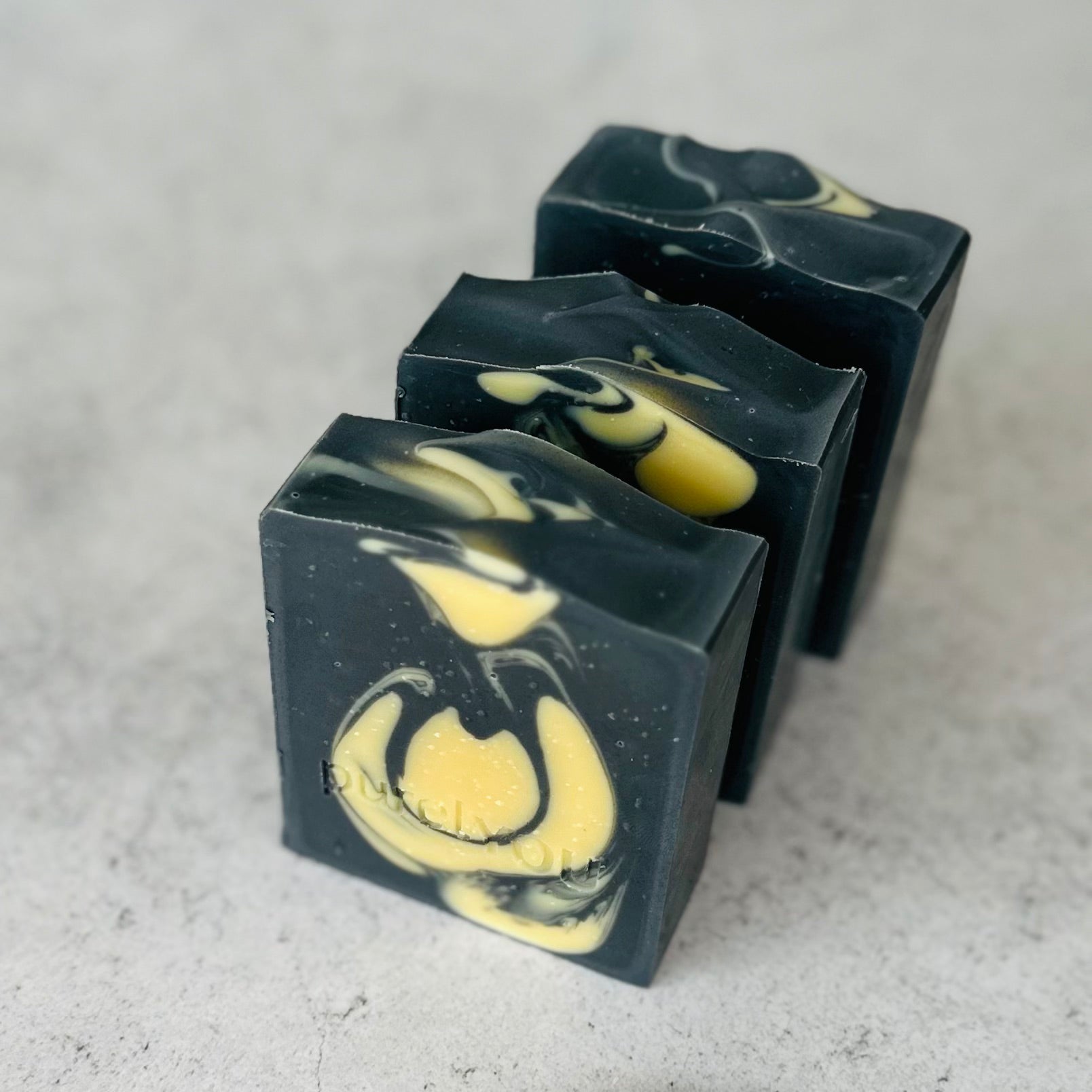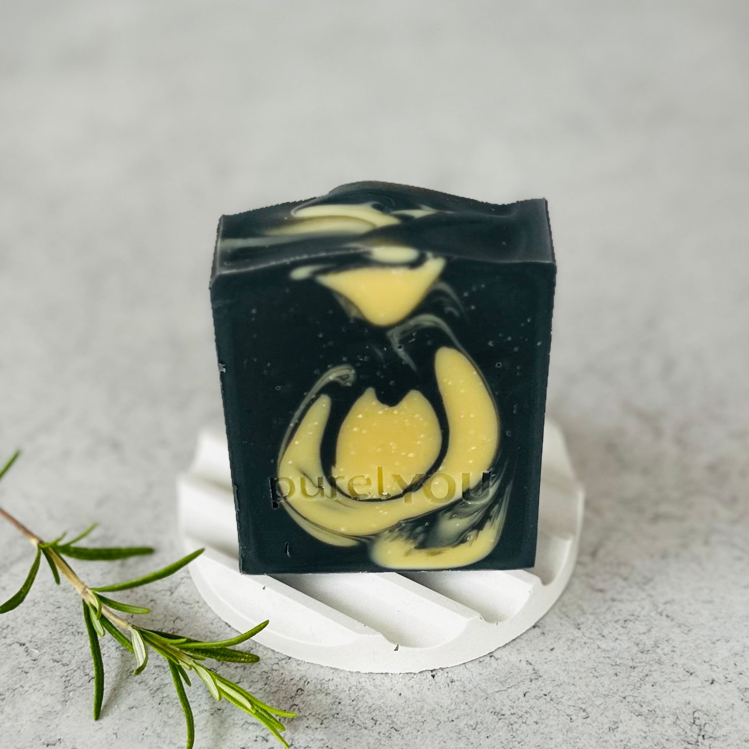 Die Detox Seife kombiniert die kraftvolle Frische ätherischer Öle aus Rosmarin, Eukalyptus und Teebaum mit tiefenreinigender Aktivkohle. Diese Seife ist ideal für ölige oder zu Unreinheiten neigende Haut – sie klärt, belebt und sorgt für ein reines, erfrischtes Hautgefühl.