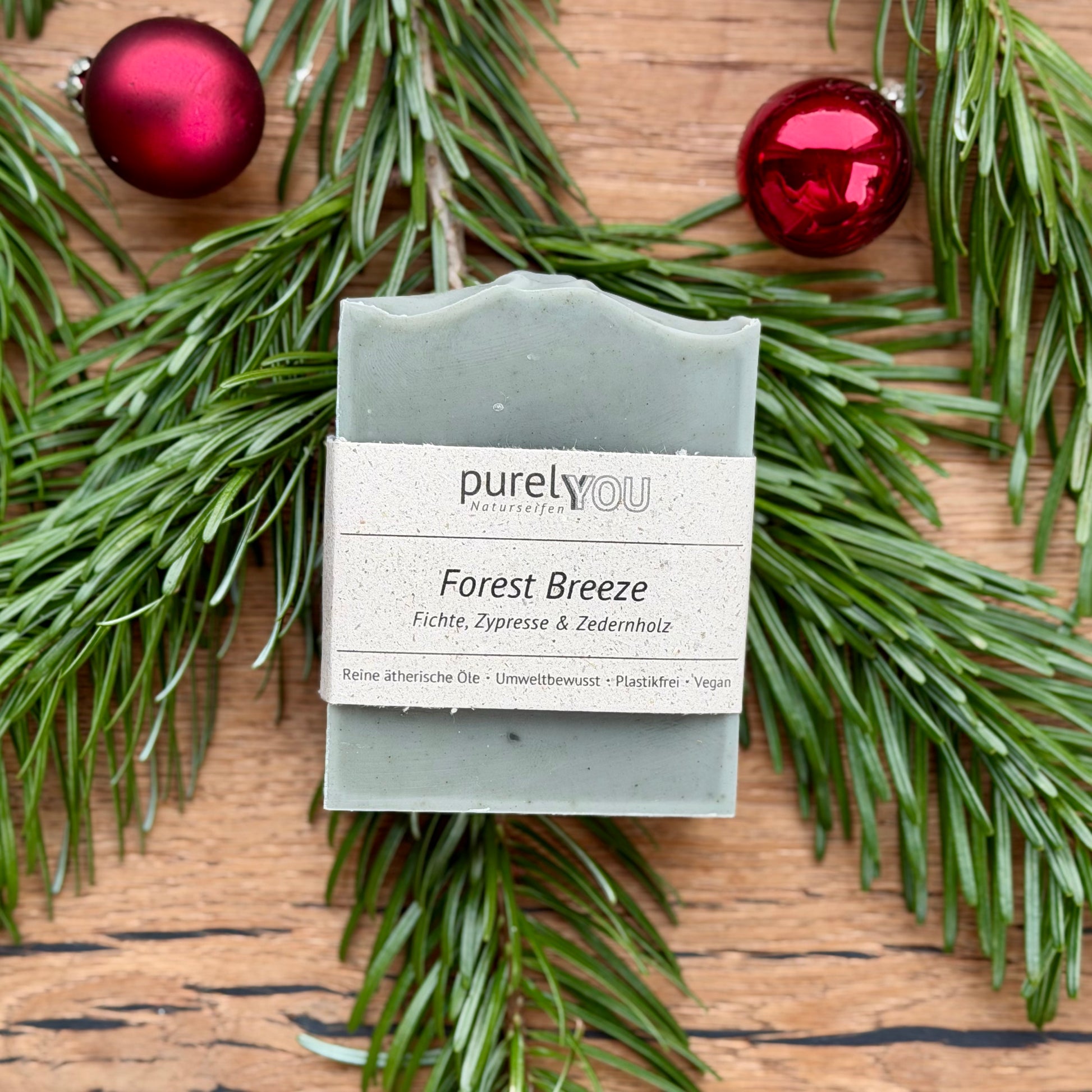 Die Forest Breeze Seife vereint die frische Klarheit von Fichtennadelöl, die kraftvolle Ruhe der Zypresse und die warme Tiefe von Zedernholz zu einem waldigen Duft, der belebt und zugleich erdet. Spirulina schenkt der Seife ihre natürlich grüne Färbung und versorgt die Haut mit wertvollen Mineralstoffen, während Aktivkohle porentief reinigt und überschüssigen Talg bindet. Das Ergebnis: eine ausgleichende, erfrischende Seife für ein reines Hautgefühl wie nach einem Spaziergang im Wald.